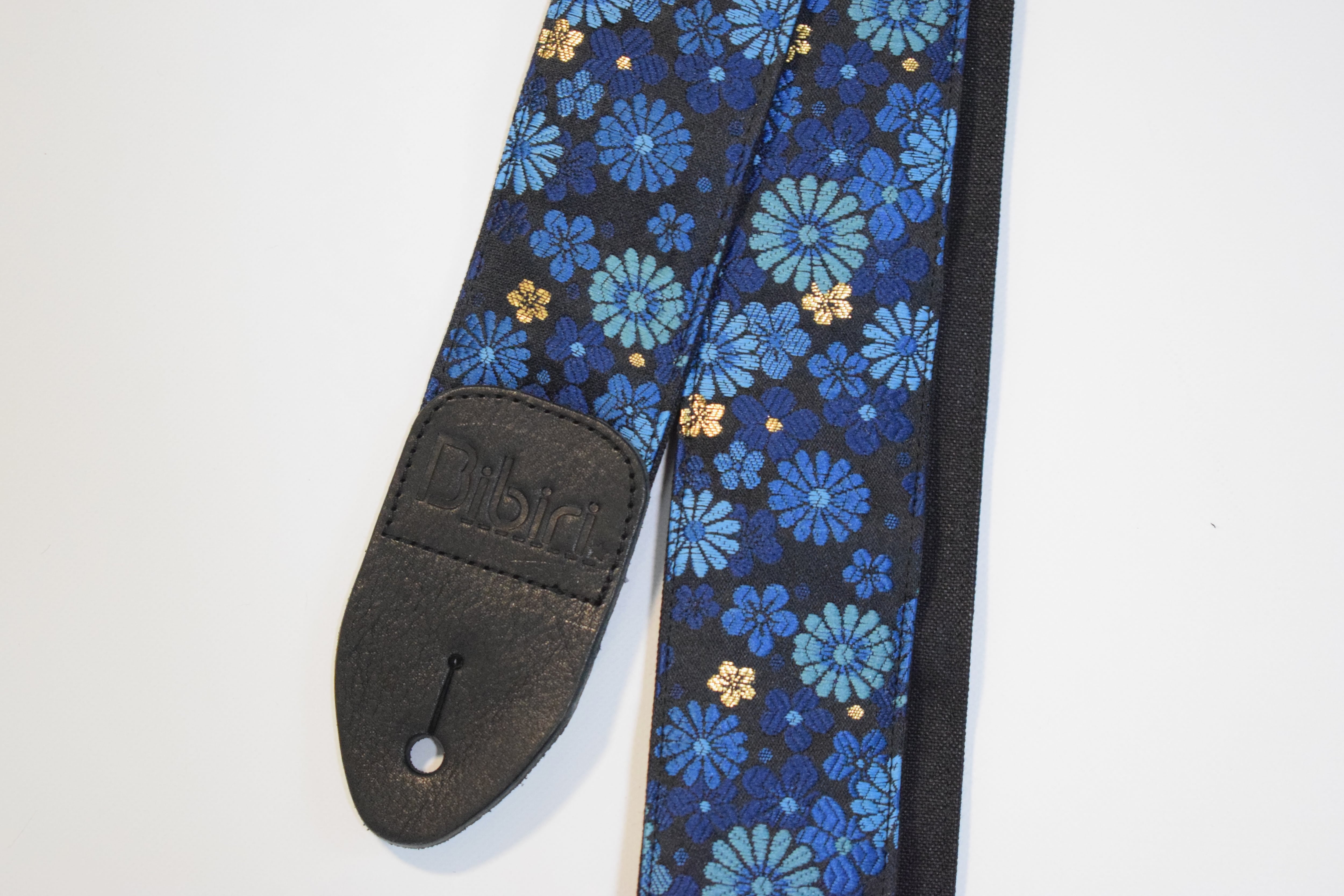 菊吹雪 帆布ギターストラップ(青)京都金襴