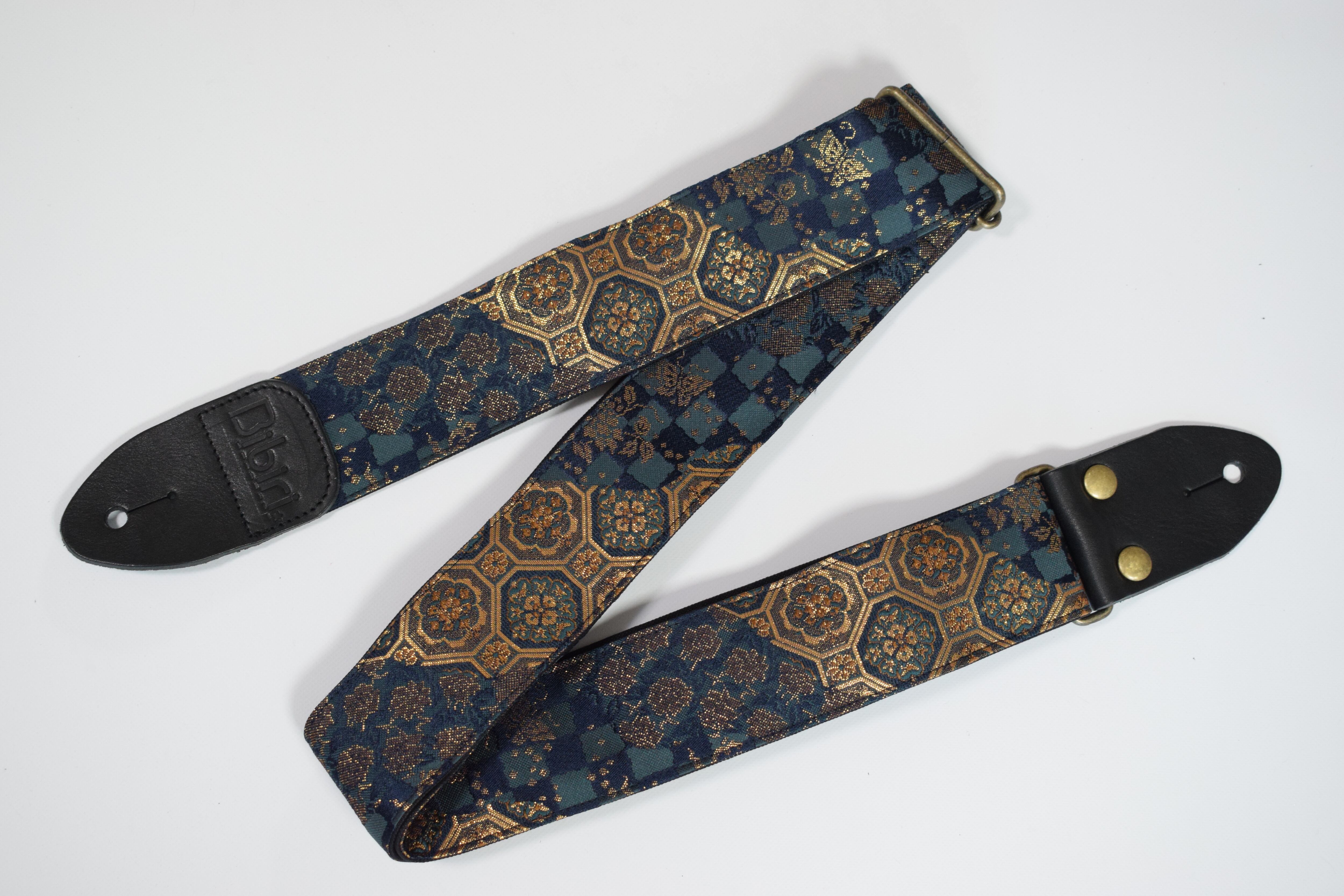 エスニック流線 帆布ギターストラップ 京都金襴