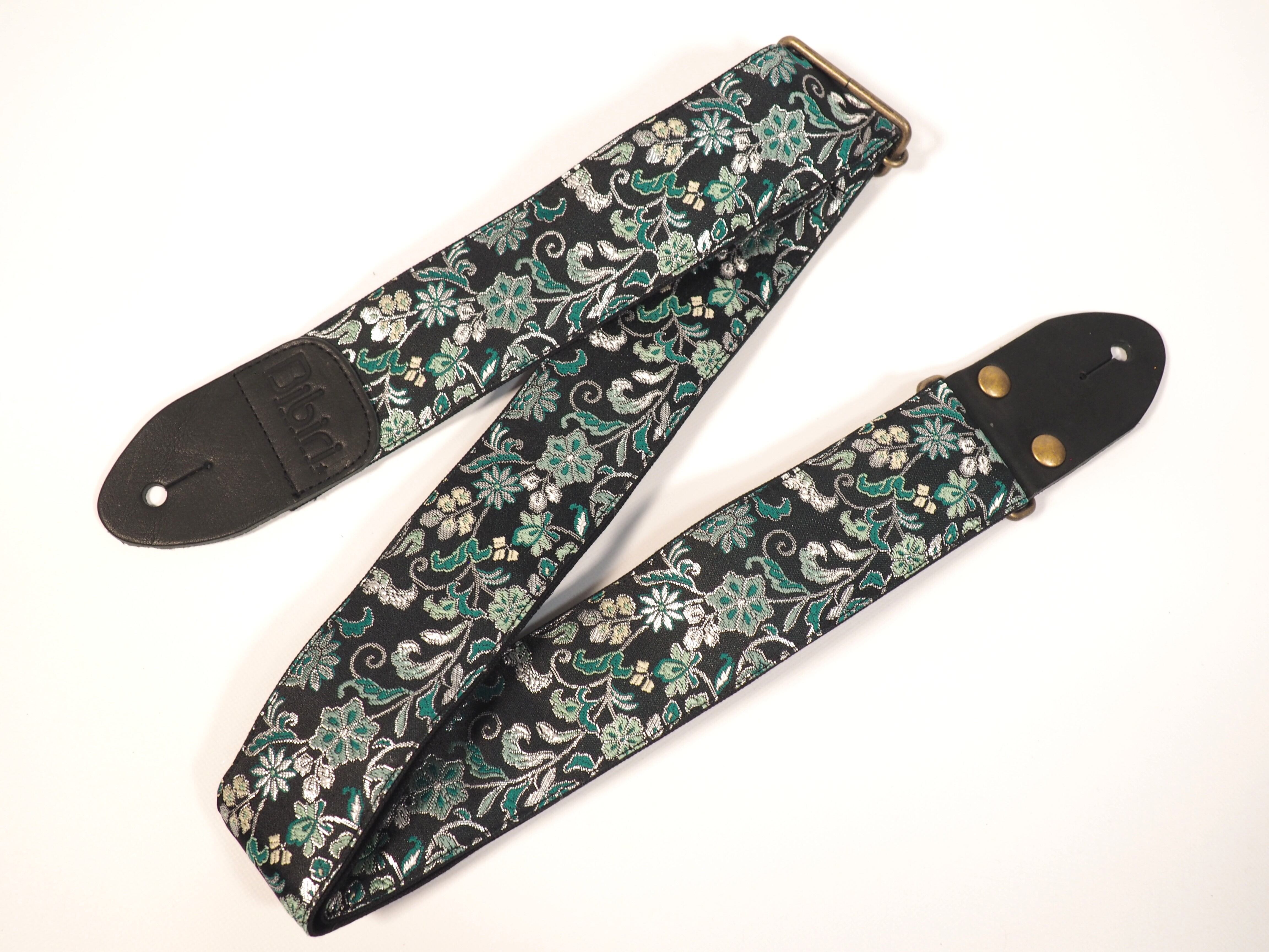 ロココ調 帆布ギターストラップ(緑)京都金襴