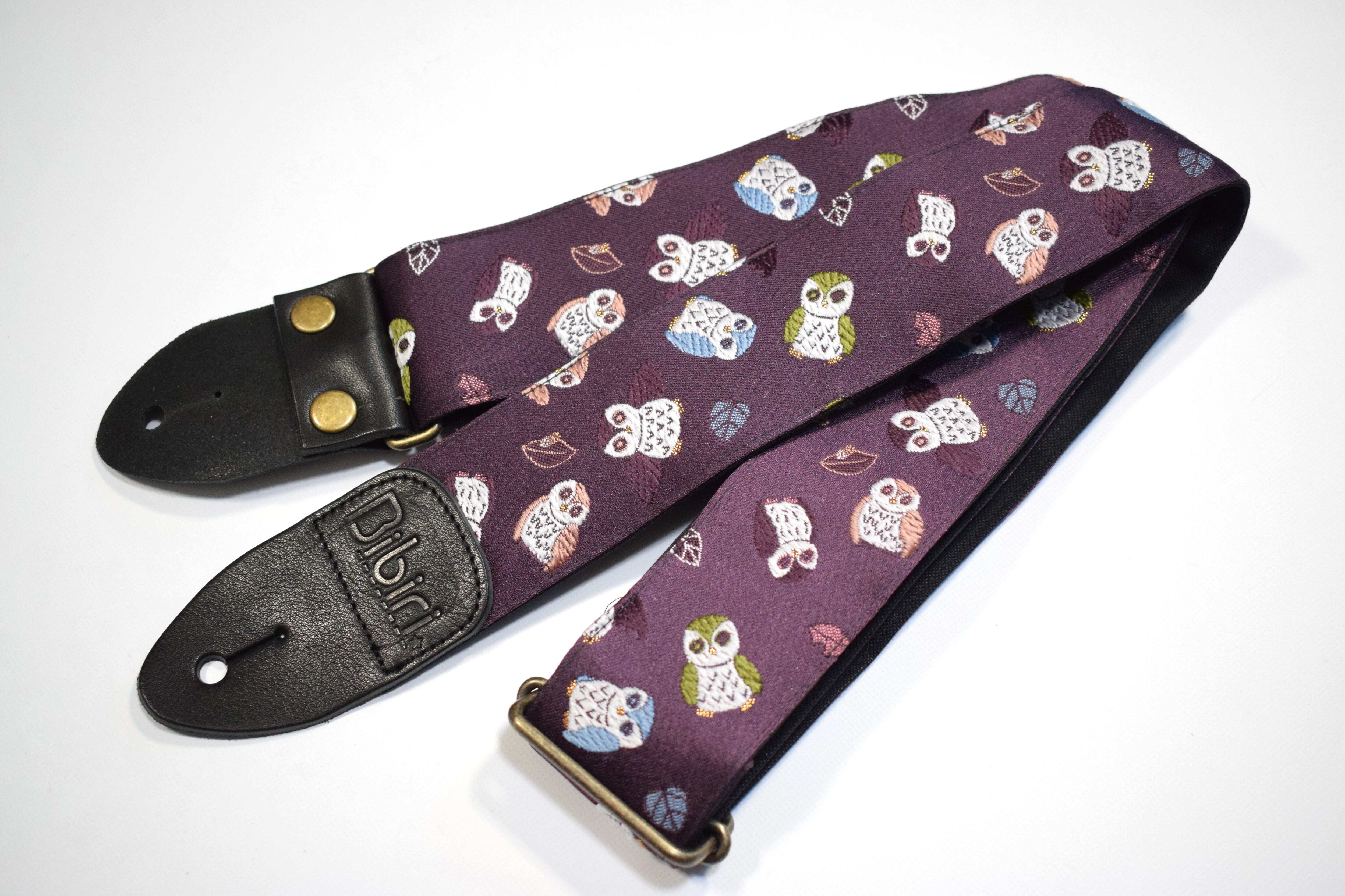 ふくろう 帆布ギターストラップ(紫)京都金襴