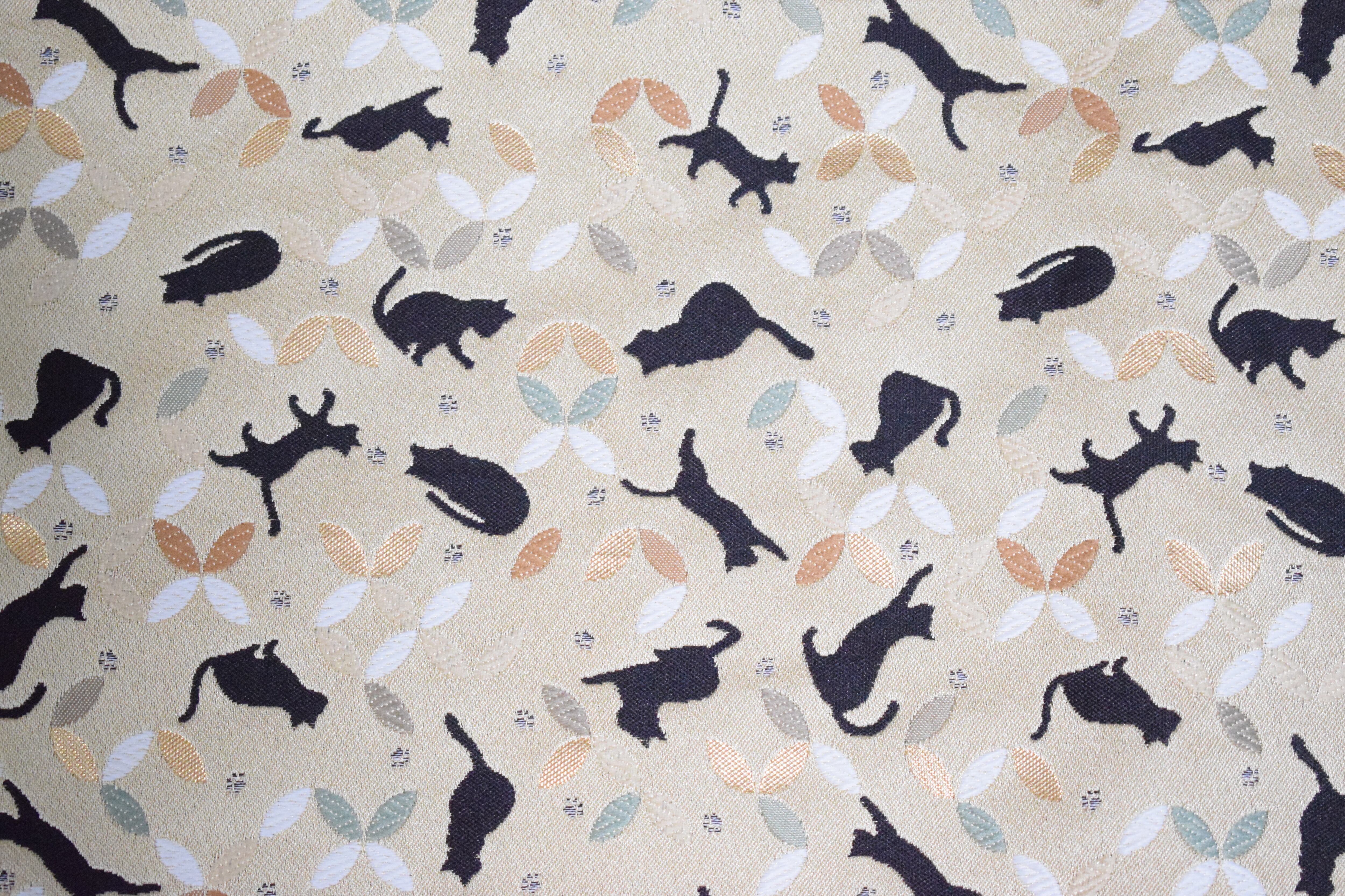 金や銀の糸を織り込んだ、浮き上がるような模様と、光の角度で表情も変わる美しい織物です♪