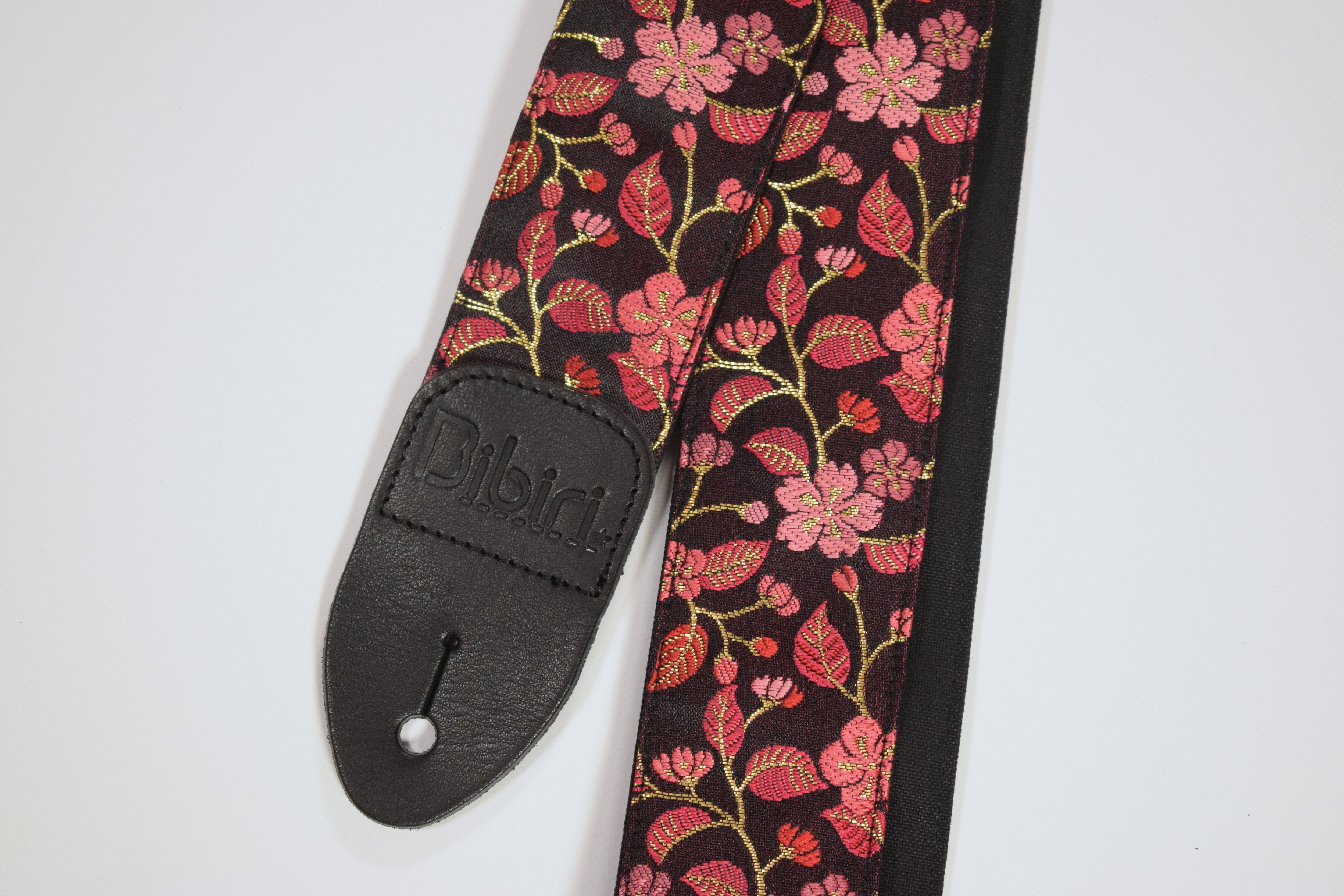 桜 帆布ギターストラップ(赤ピンク)京都金襴