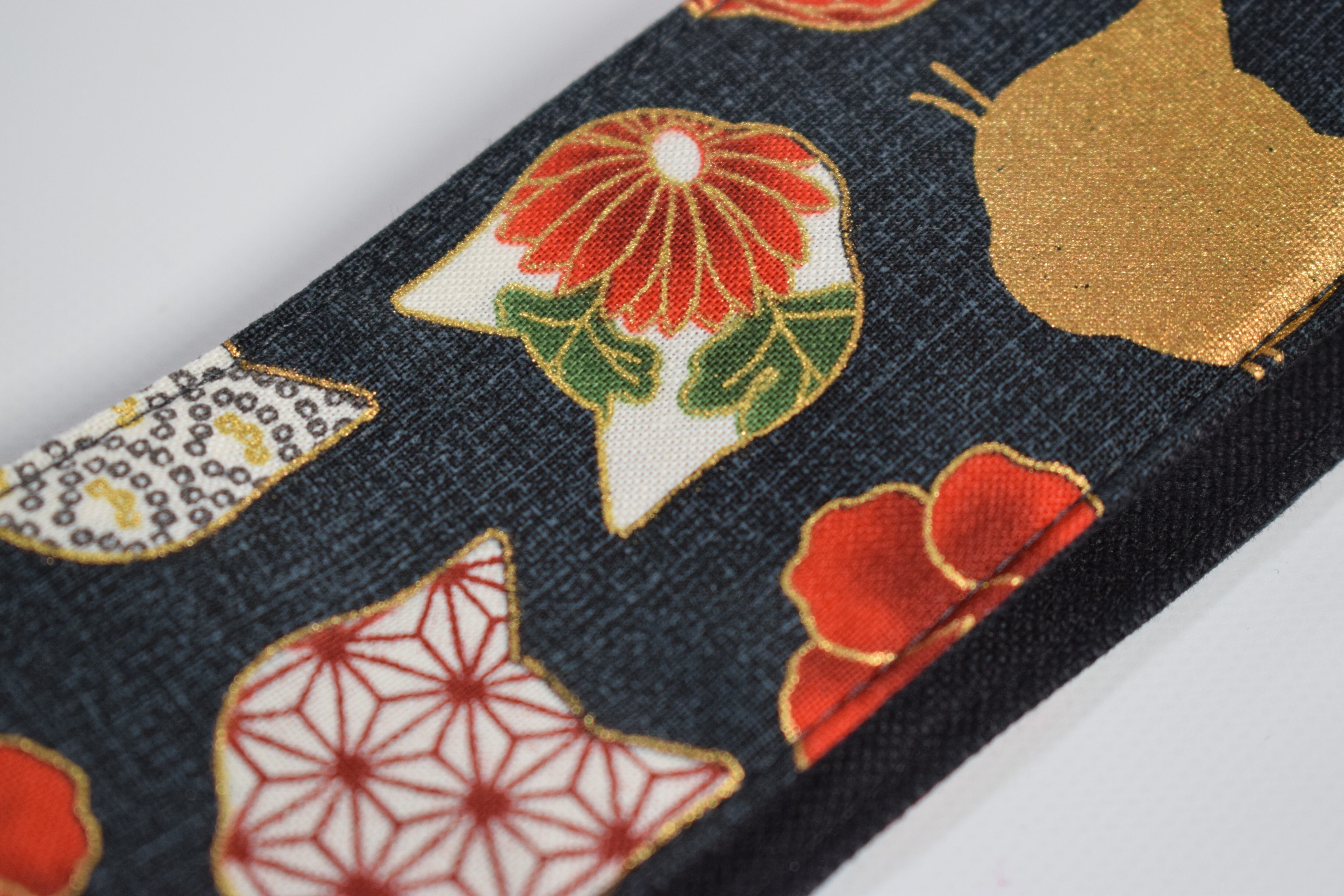 和風猫 帆布ギターストラップ