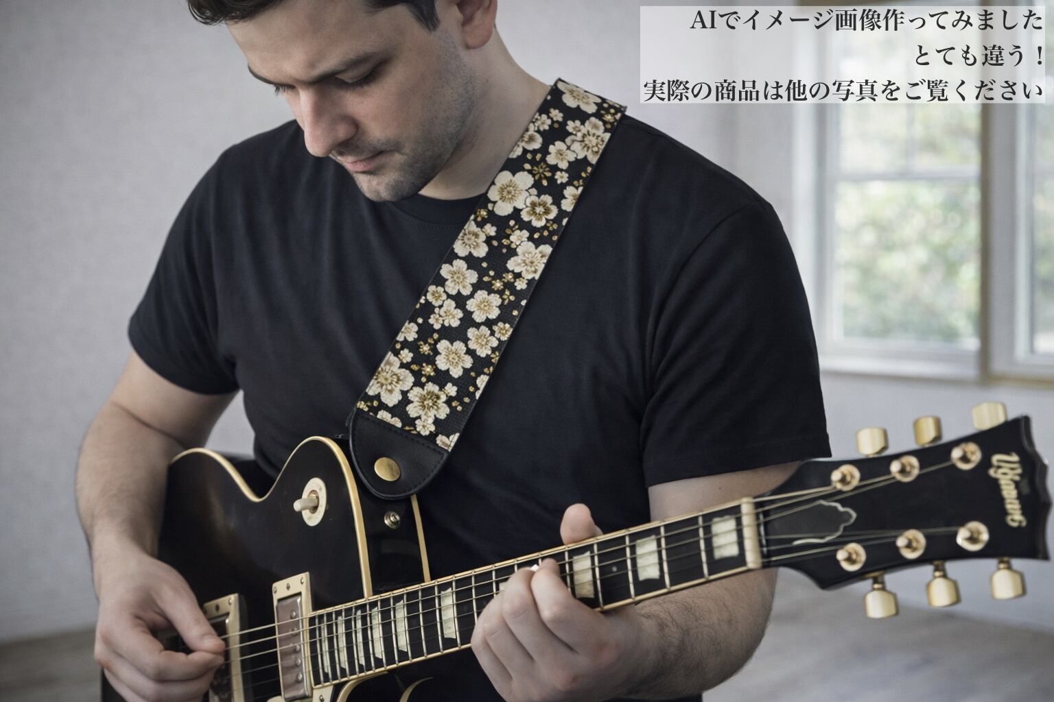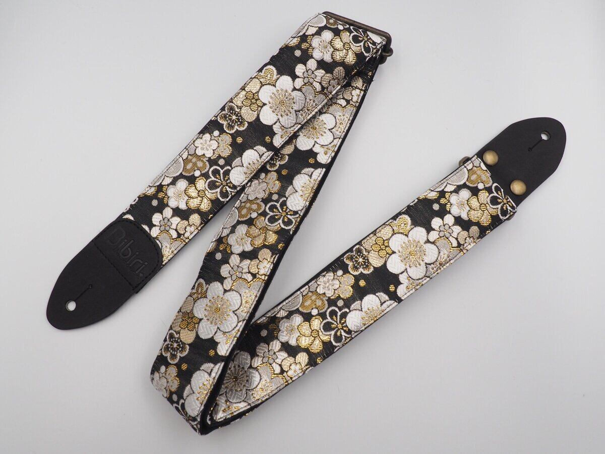 モダン梅 帆布ギターストラップ(黒)京都金襴