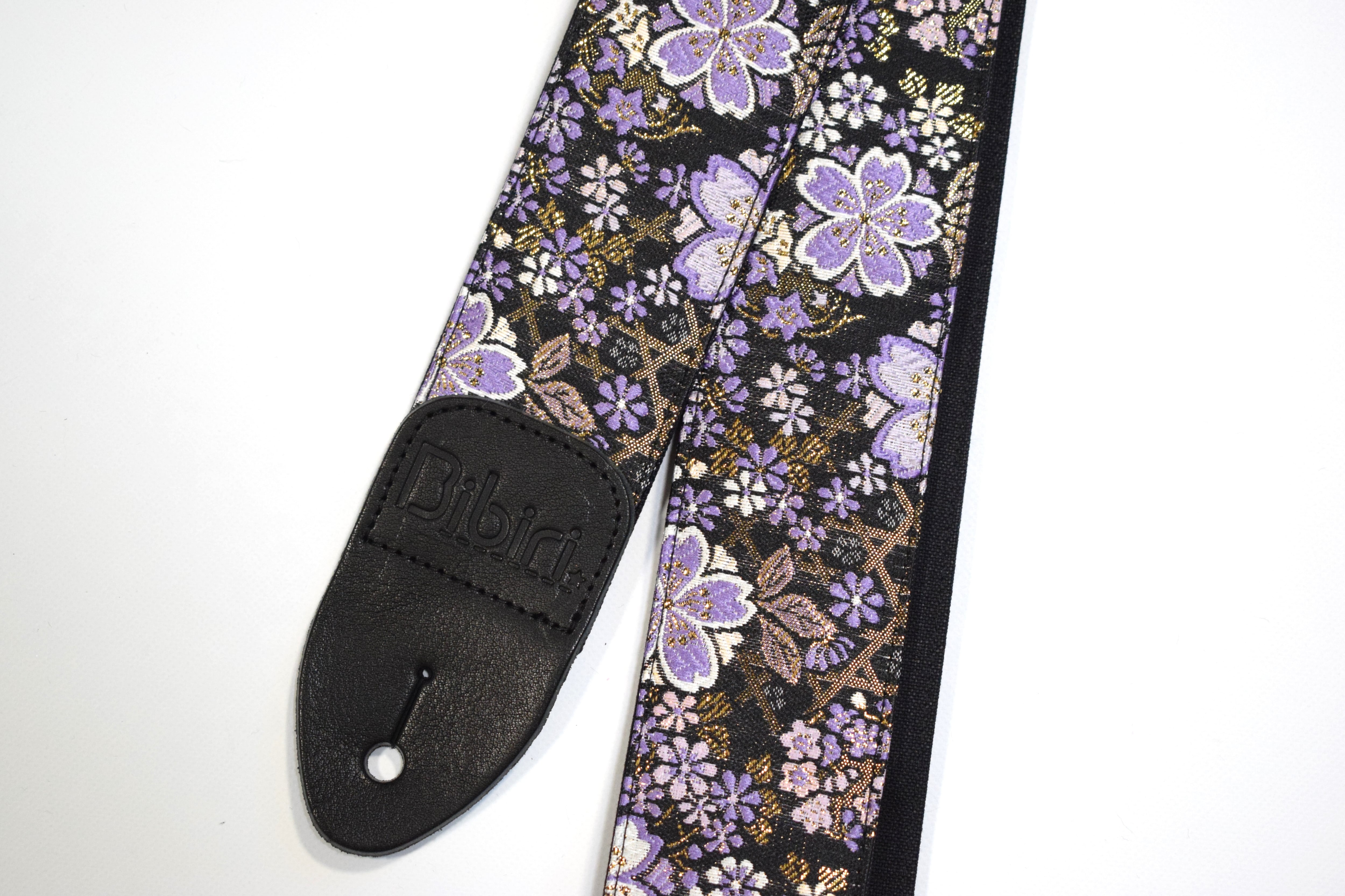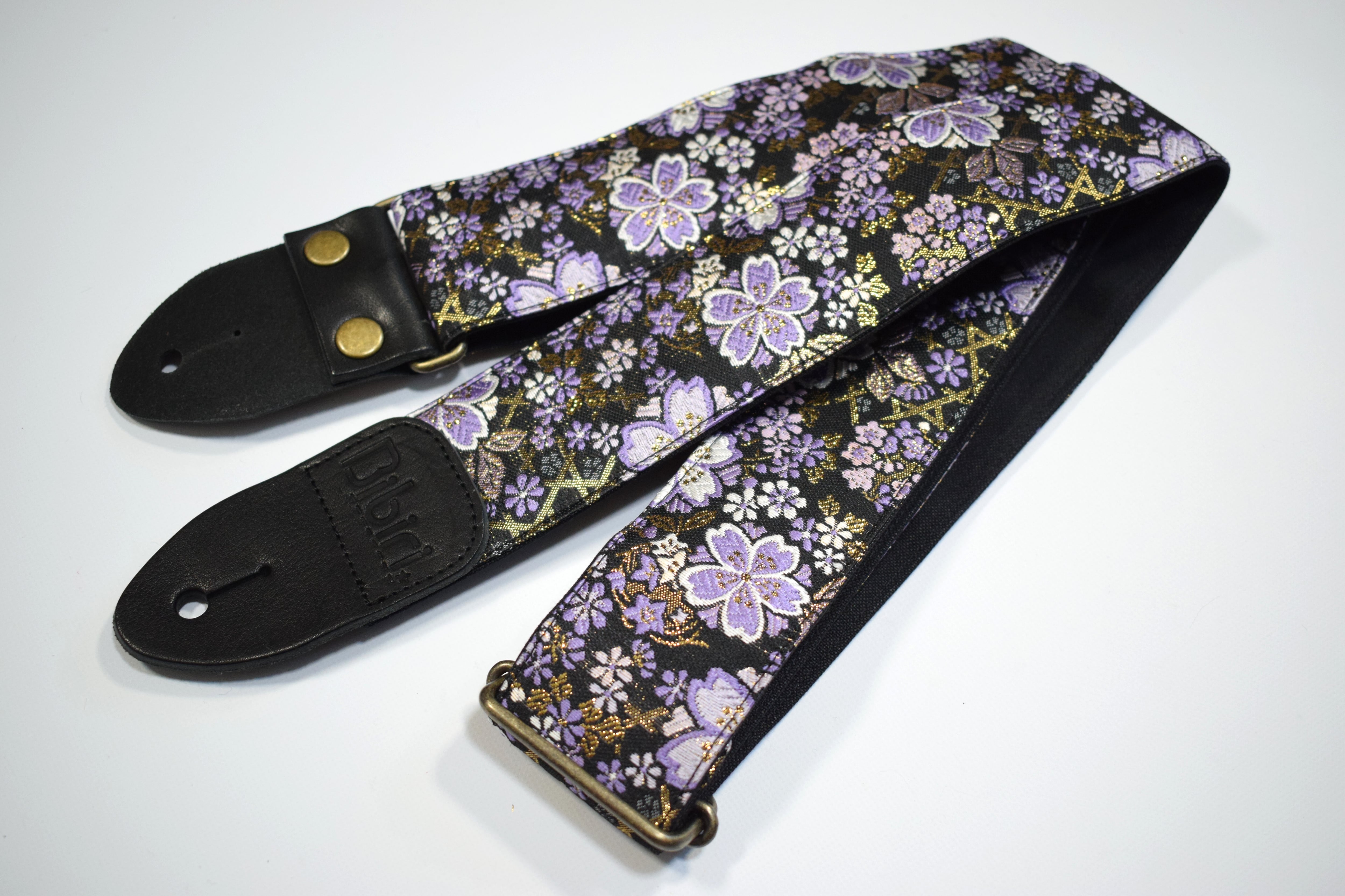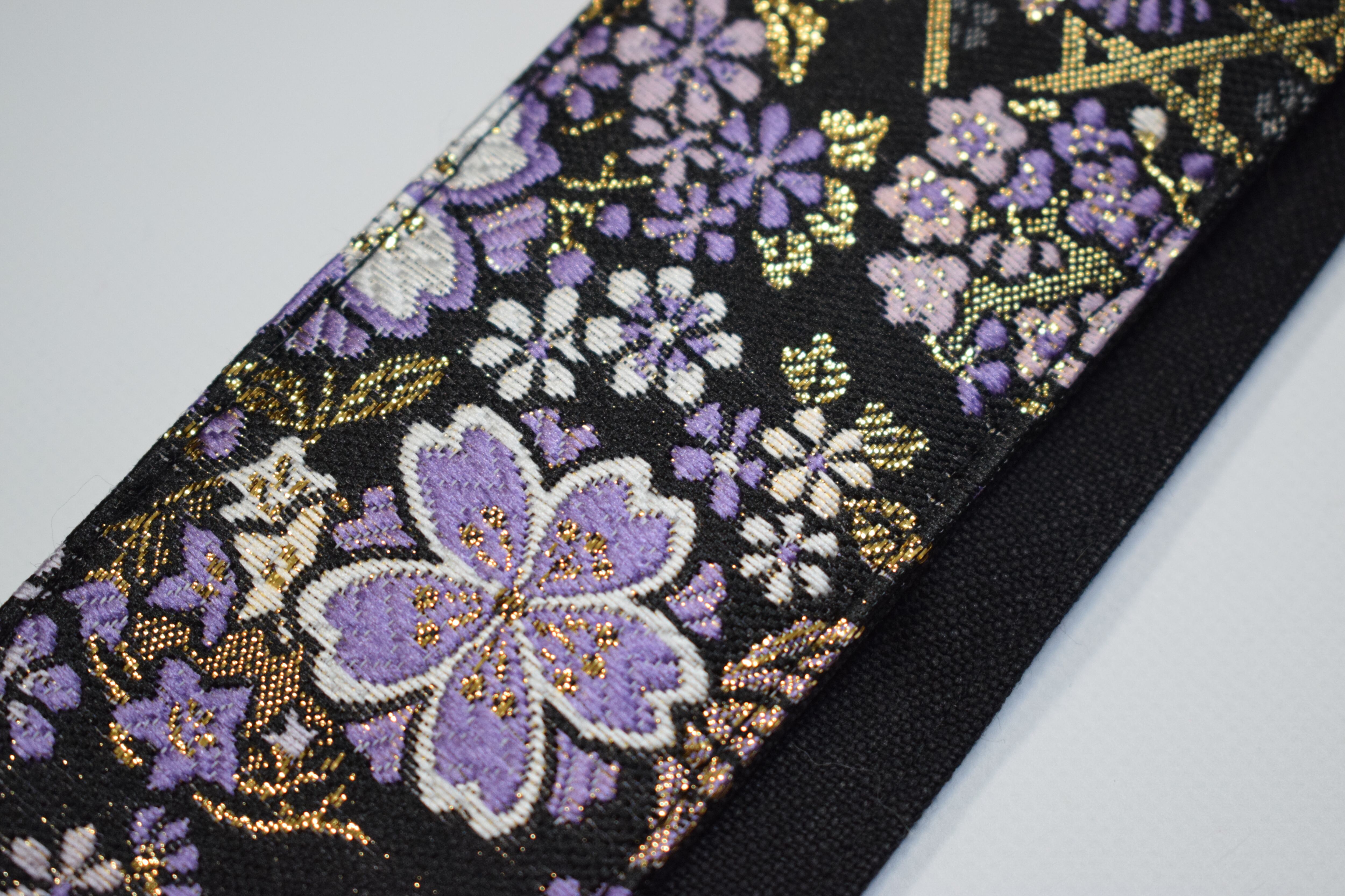 桜ブラック 帆布ギターストラップ 京都金襴