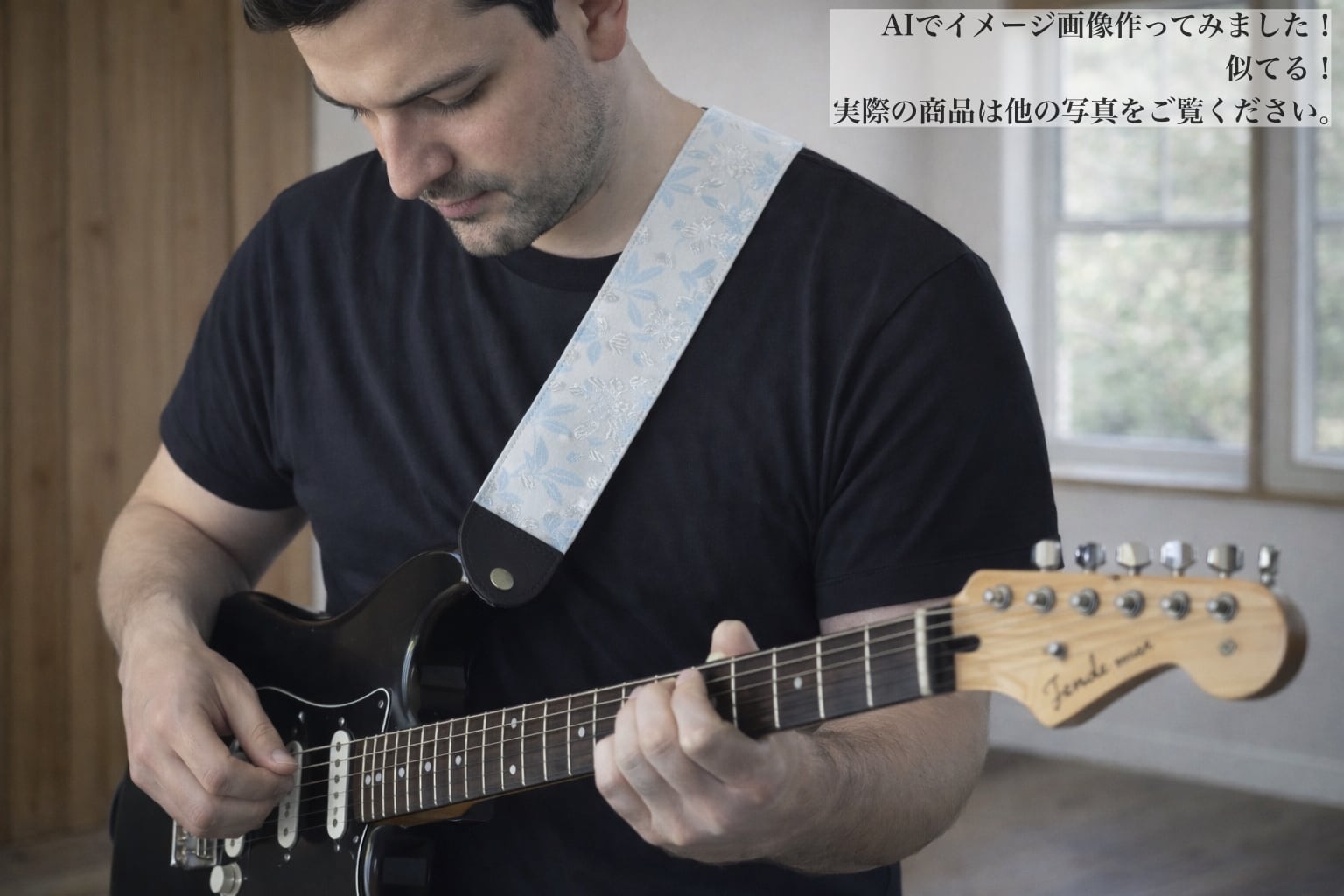 つぼみ葉桜 帆布ギターストラップ(白水色)京都金襴